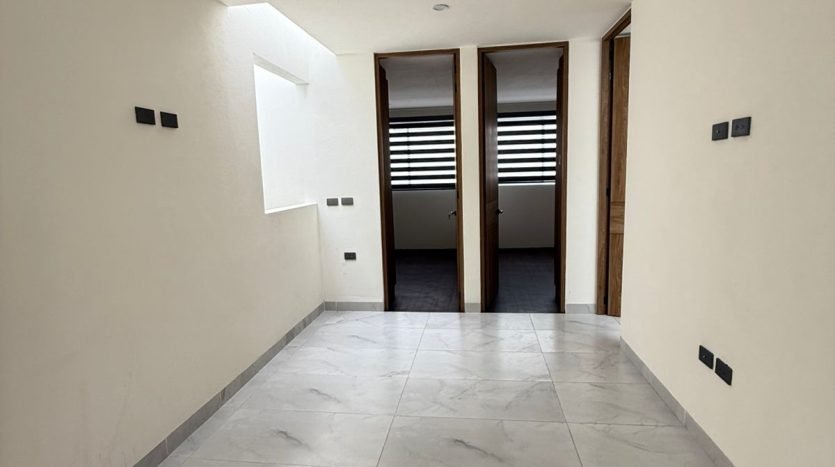 La planta alta está dedicada al descanso y la funcionalidad. Un family room central conecta las historias de cada habitante, mientras que la recámara principal se convierte en un santuario privado con su propio walking clóset. Cada rincón, desde las recámaras secundarias hasta el cuarto de servicios estratégicamente ubicado, refleja un pensamiento arquitectónico donde nada es azaroso y todo está diseñado para su confort.