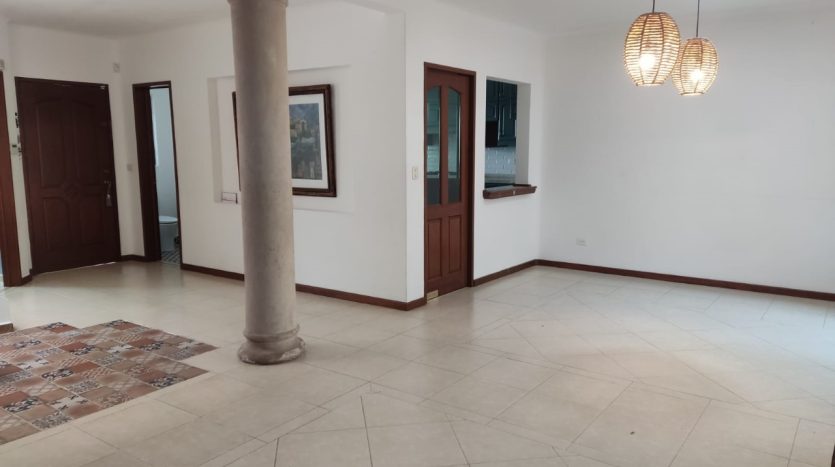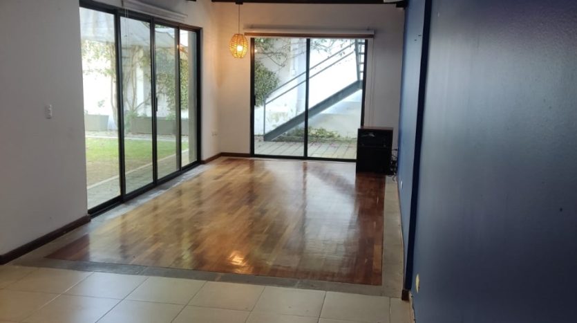 Amplia sala y comedor con excelente iluminación natural, cocina integral moderna, medio baño, estudio, cuarto de lavado y un acogedor jardín.